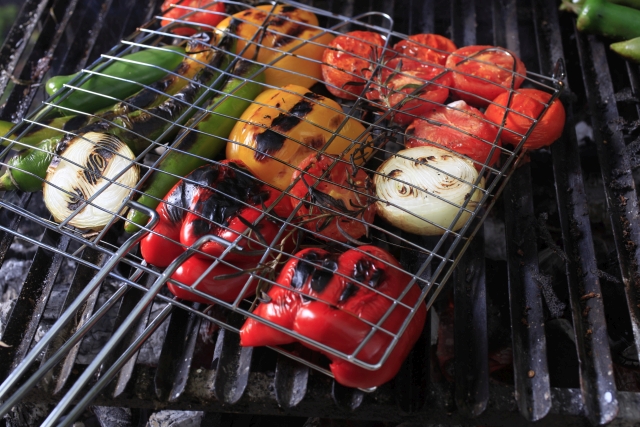 את הסלט הזה בגרסאות פשוטות יותר רואים בכמה שיפודיות ערמומיות. טכנית - המתקן הפשוט והגאוני שנועד להכנת דגים בגריל, מקל על הכנת המתכון. שום דבר לא נופל בין פסי הגריל ולא צריך להפוך דברים קטנים. מסדרים את הירקות זה לצד זה, ורק חשוב לחתוך בעובי שמתאים לזמן ההכנה. למשל: עגבנייה נחתוך לפרוסות עבות יותר מאשר בצל...מרשים, טעים, חריף אם רוצים ובייחוד נהדר!!!