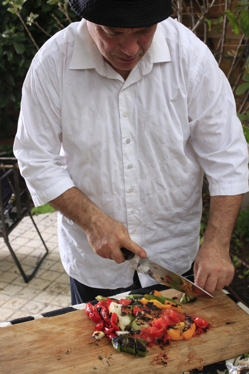 את הסלט הזה בגרסאות פשוטות יותר רואים בכמה שיפודיות ערמומיות. טכנית - המתקן הפשוט והגאוני שנועד להכנת דגים בגריל, מקל על הכנת המתכון. שום דבר לא נופל בין פסי הגריל ולא צריך להפוך דברים קטנים. מסדרים את הירקות זה לצד זה, ורק חשוב לחתוך בעובי שמתאים לזמן ההכנה. למשל: עגבנייה נחתוך לפרוסות עבות יותר מאשר בצל...מרשים, טעים, חריף אם רוצים ובייחוד נהדר!!!